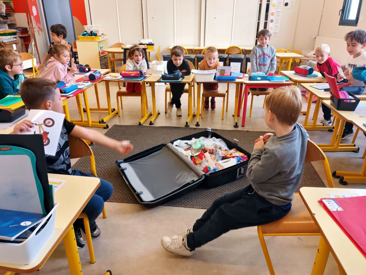 A travers des activités ludiques et concrètes, les élèves ont abordé la notion de déchet, la quantité de déchets produite par une personne en un an, le temps de décomposition d'un déchet dans la nature et comment bien trier.