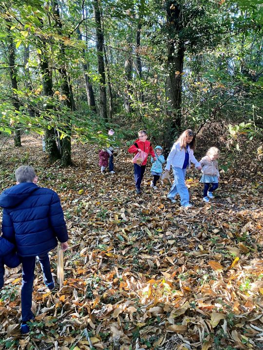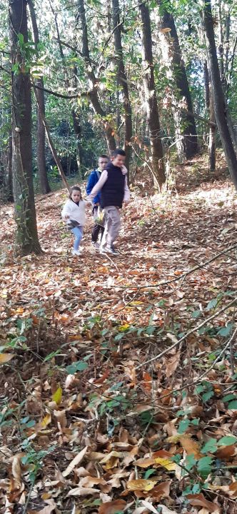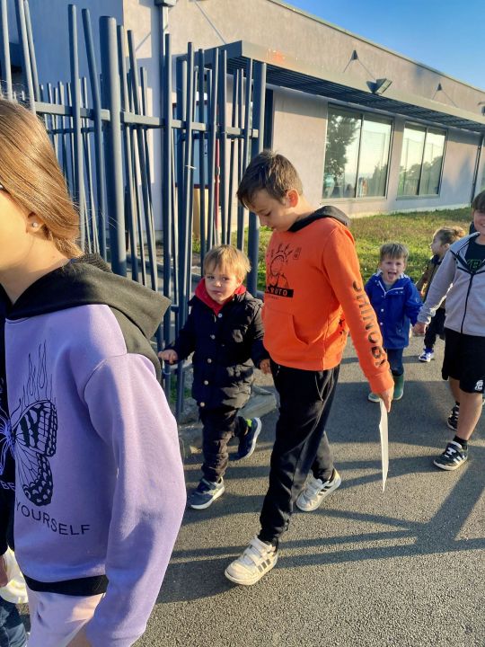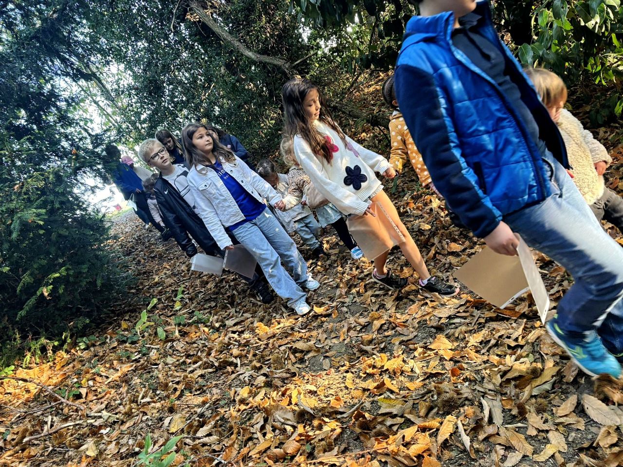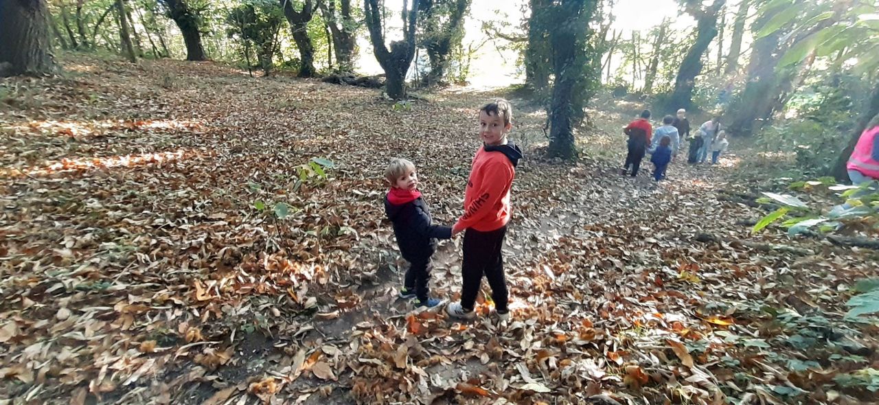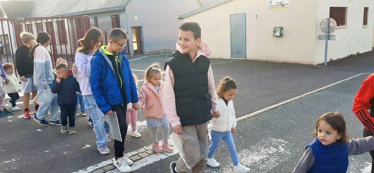 Les élèves de TPS, PS, MS et de CM2 sont partis en promenade en forêt, main dans la main, pour une activité spéciale.