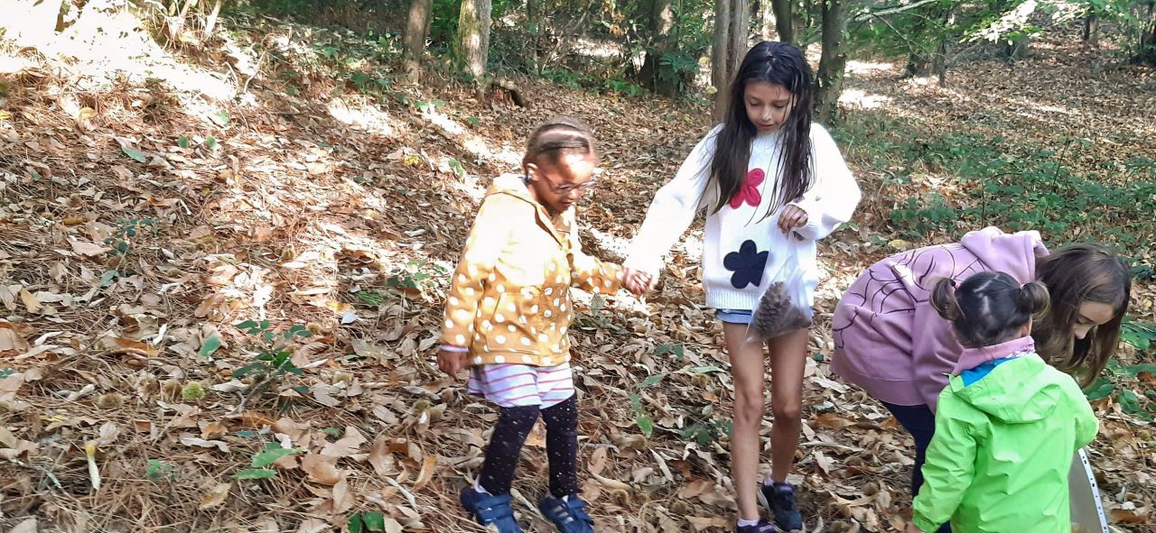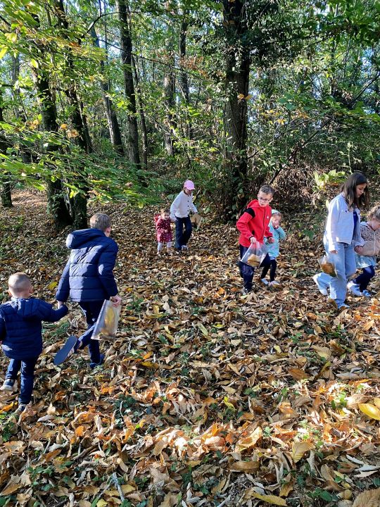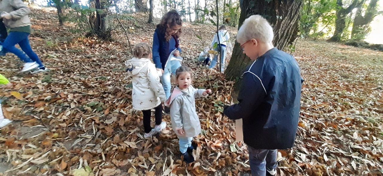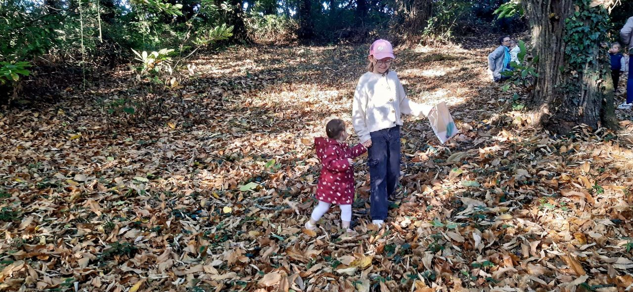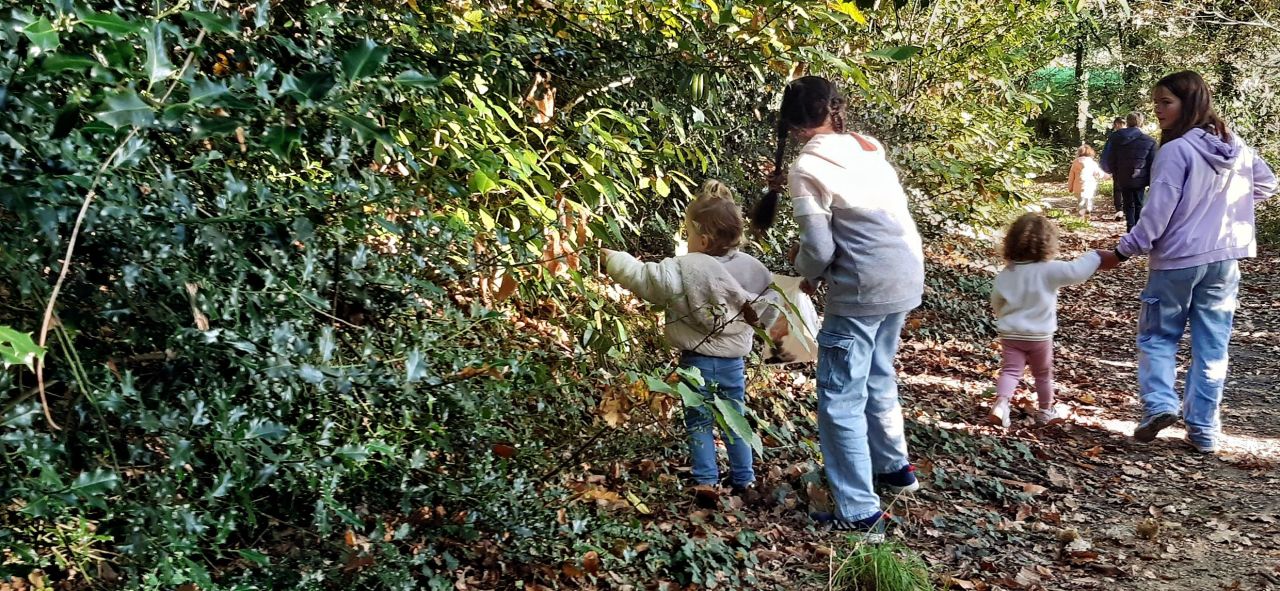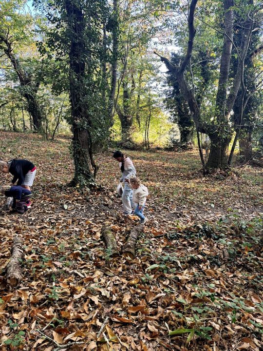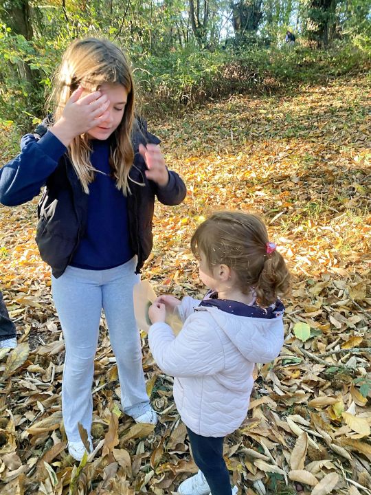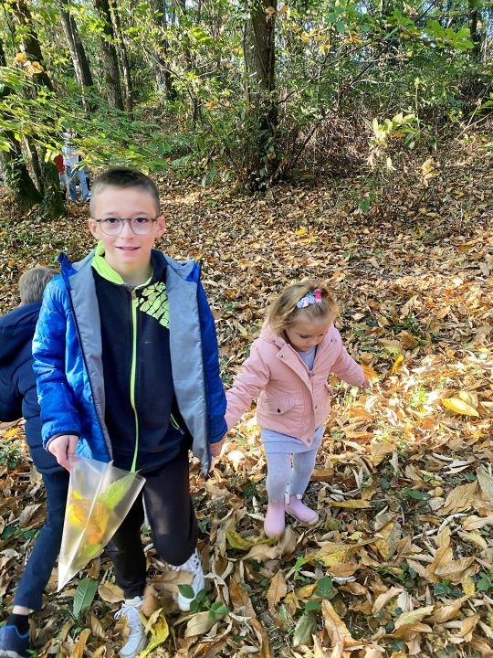 Les plus grands ont aidé les plus petits à observer, ramasser, découvrir la nature… et à récolter des trésors : feuilles, bâtons, cailloux, écorces, glands...