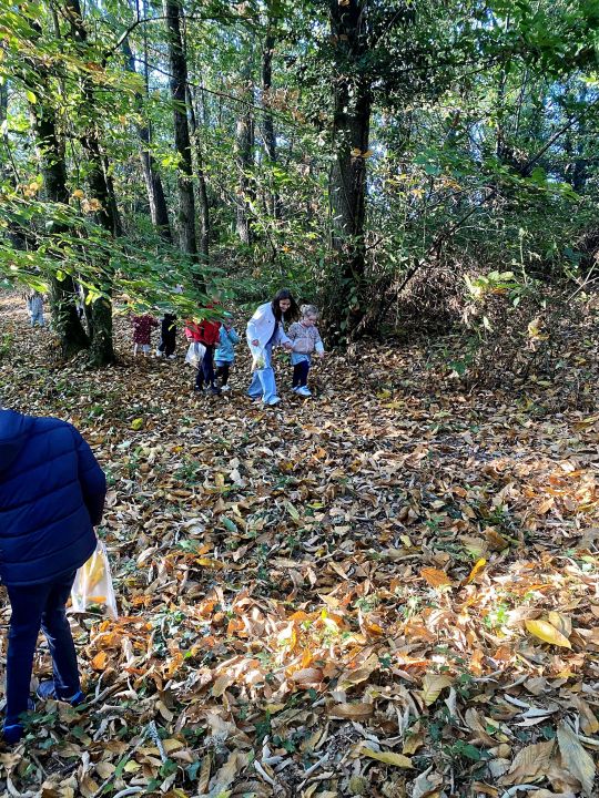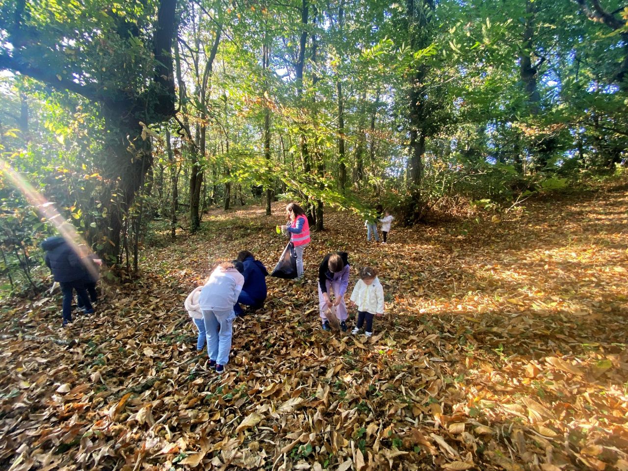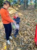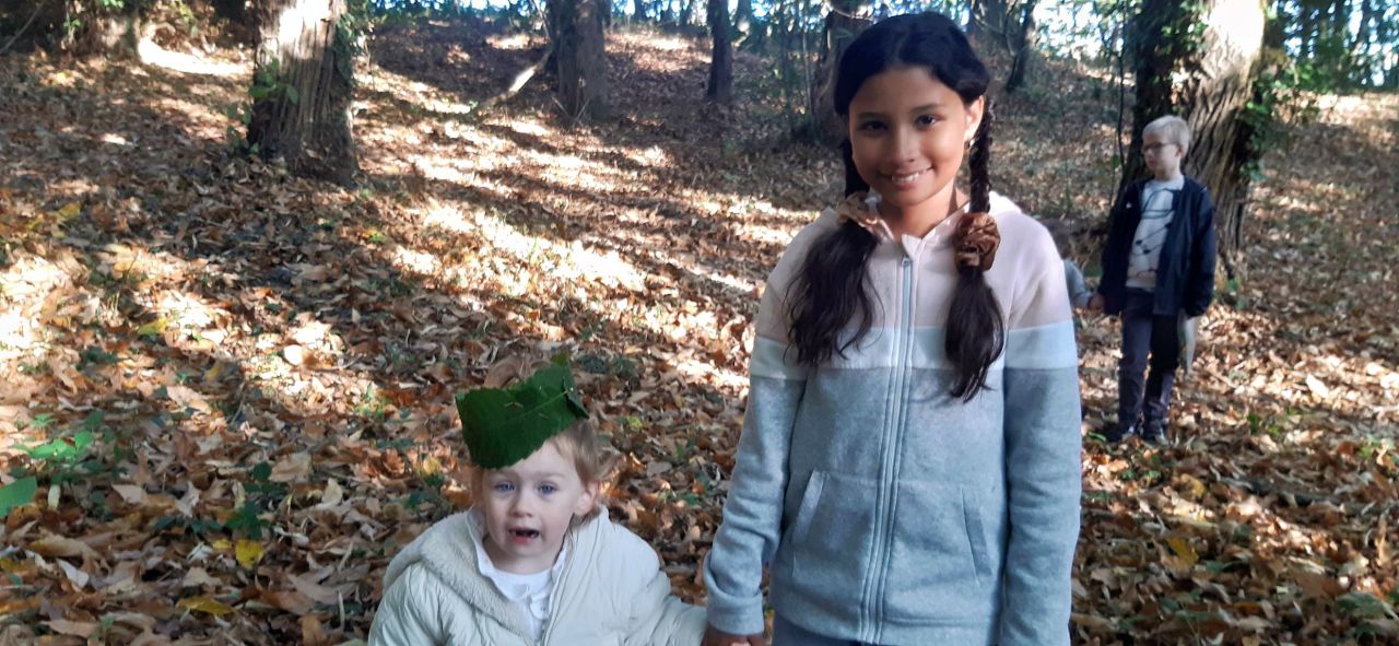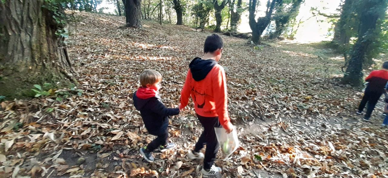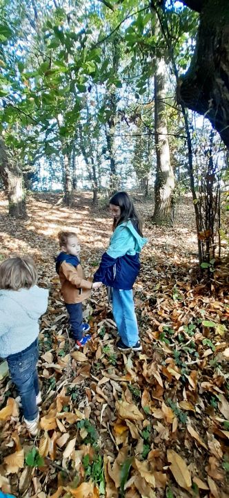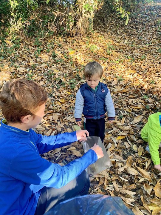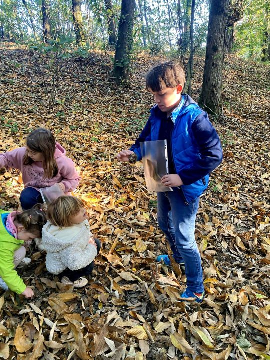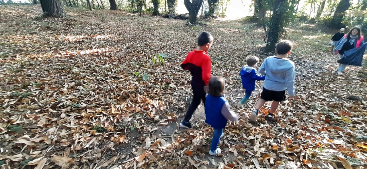 Les plus grands ont aidé les plus petits à observer, ramasser, découvrir la nature… et à récolter des trésors : feuilles, bâtons, cailloux, écorces, glands...