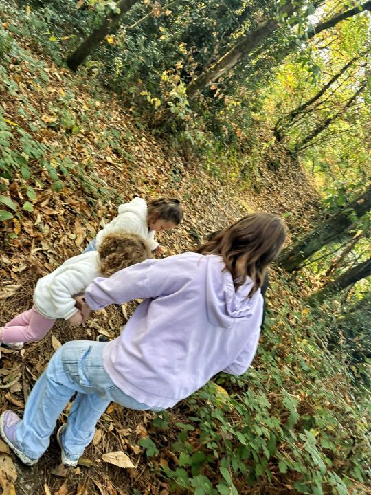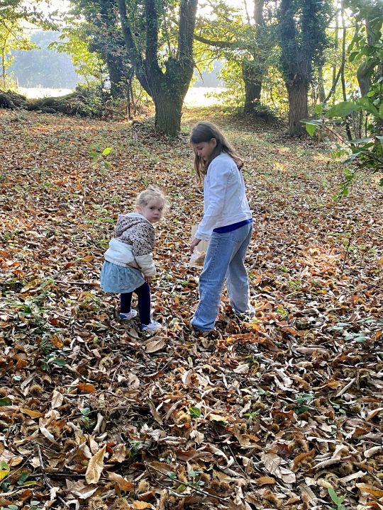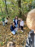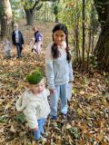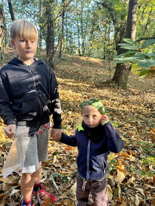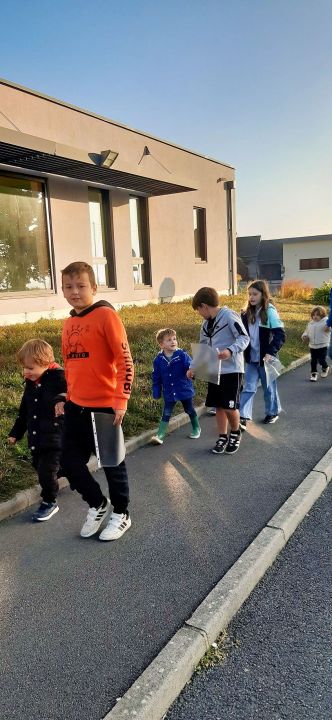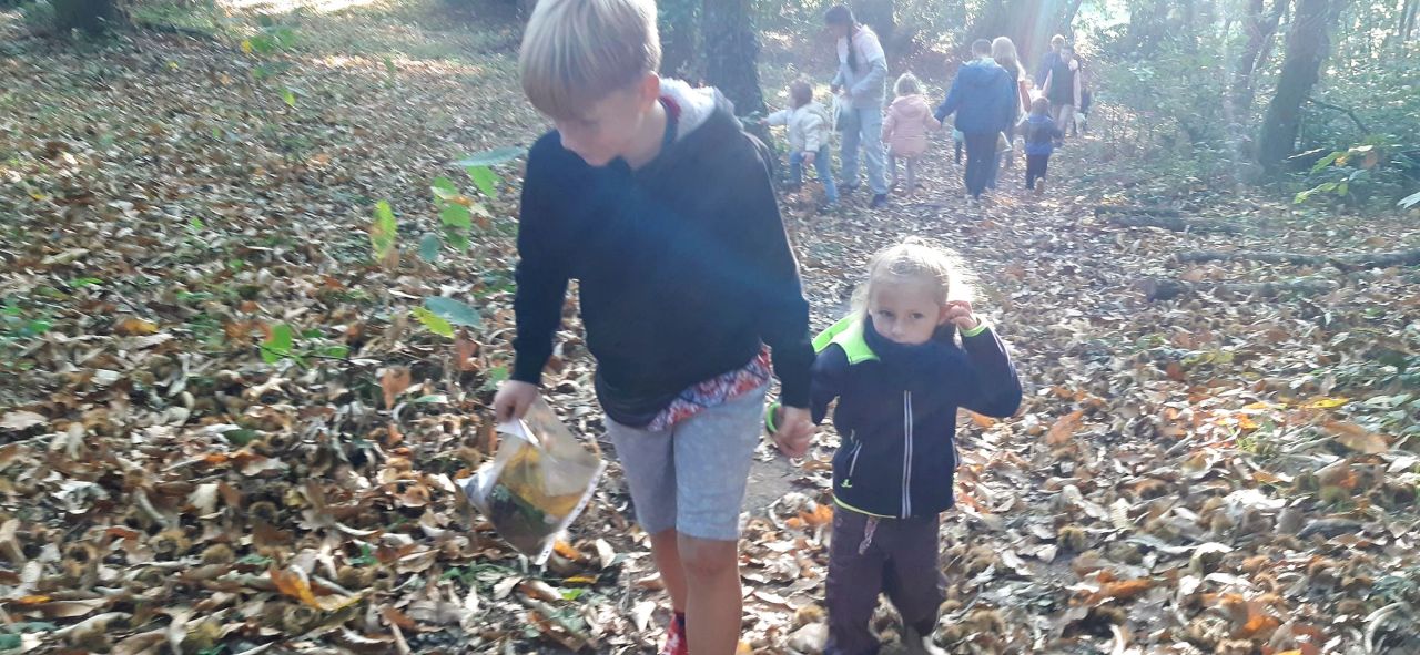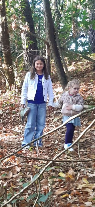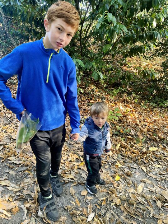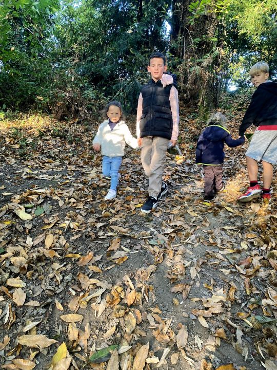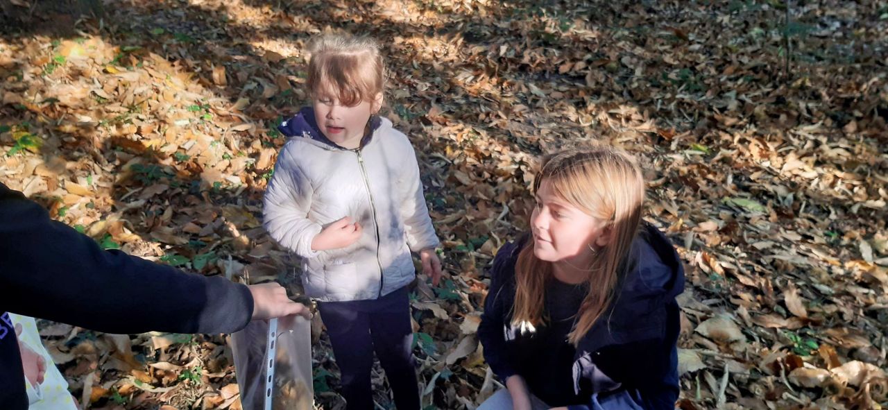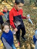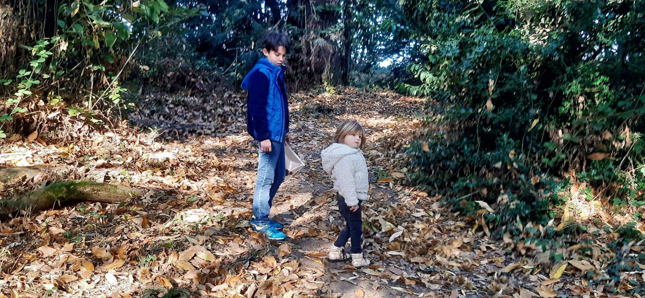 Les plus grands ont aidé les plus petits à observer, ramasser, découvrir la nature… et à récolter des trésors : feuilles, bâtons, cailloux, écorces, glands...